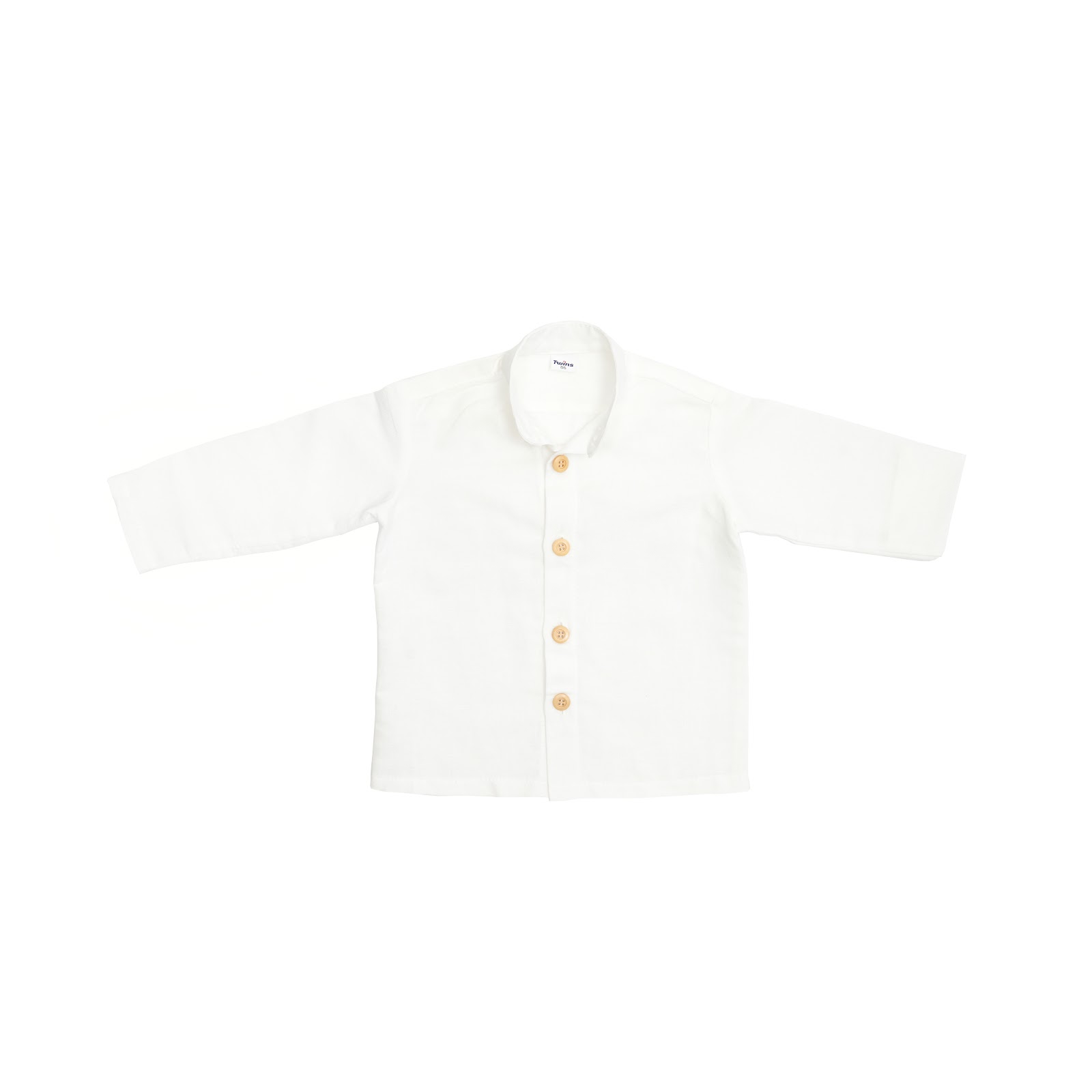Сорочка Twins для хлопчика — стильна та комфортна сорочка білого кольору, виготовлена з натурального льону, яка забезпечує приємне відчуття легкості та свіжості навіть у теплу погоду.