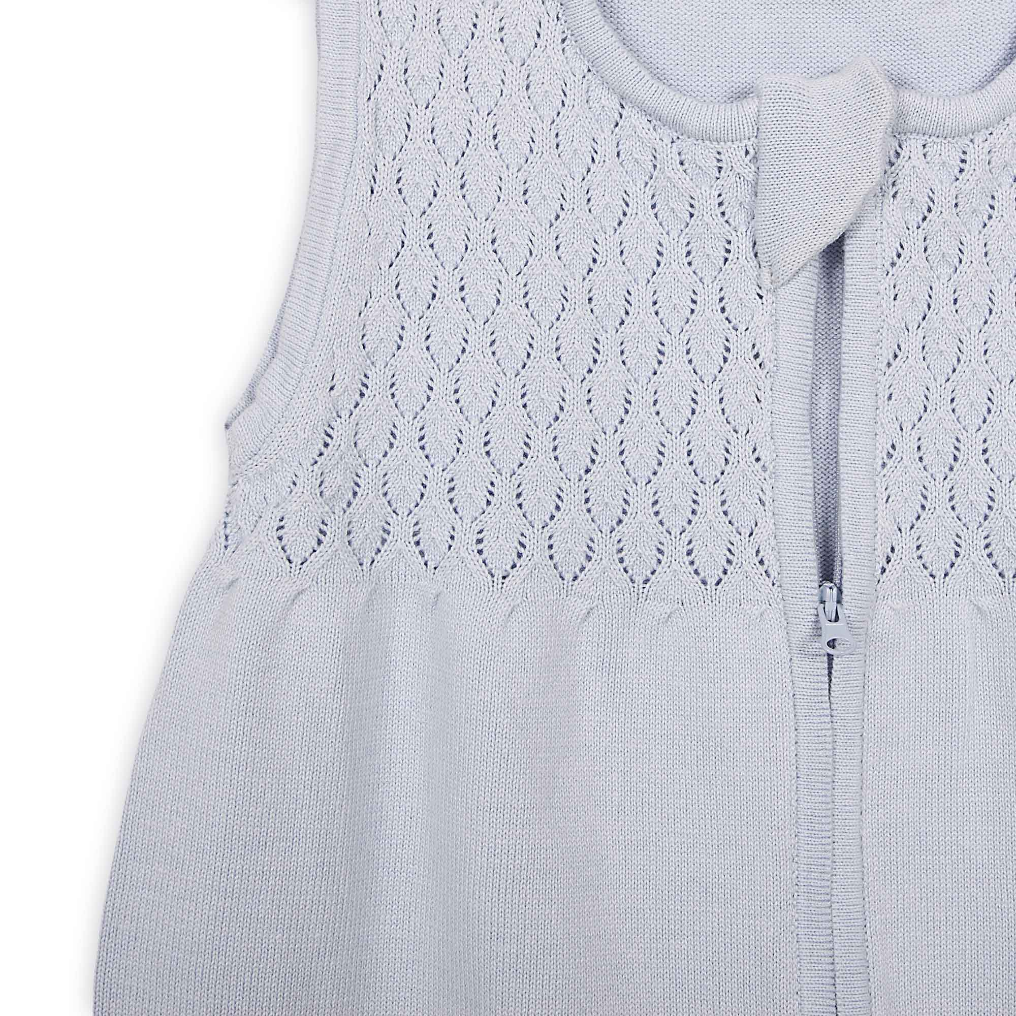 Ніжний до шкіри дитини спальний мішок виготовлений з трикотажної тканини на основі відібраної бавовняної пряжі, яка забезпечить вашій дитині комфорт і безпеку, а також достатню вентиляцію під час сну, прогулянки або подорожі. Спеціально підготовлений отвір для ручок і шийки запобігає ковзанню дитини всередину.