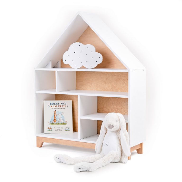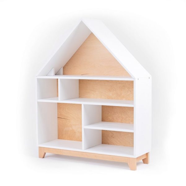 Має широкий спектр використання та доступний навіть найменшому гостю дитячої кімнати. Ви можете використовувати стелаж як полицю для улюблених іграшок, книжкову шафу або як ляльковий будиночок. Завдяки тому, що висота полиць регулюється для дітей і таким чином легко доступна. Будиночок розвиває самостійність і пробуджує дитину вирішувати, з якою іграшкою їй грати. Полиця-будиночок також є елегантною прикрасою дитячої кімнати. Він виготовлений з якісної деревини вільхи, ідеально гладкий та оброблений.