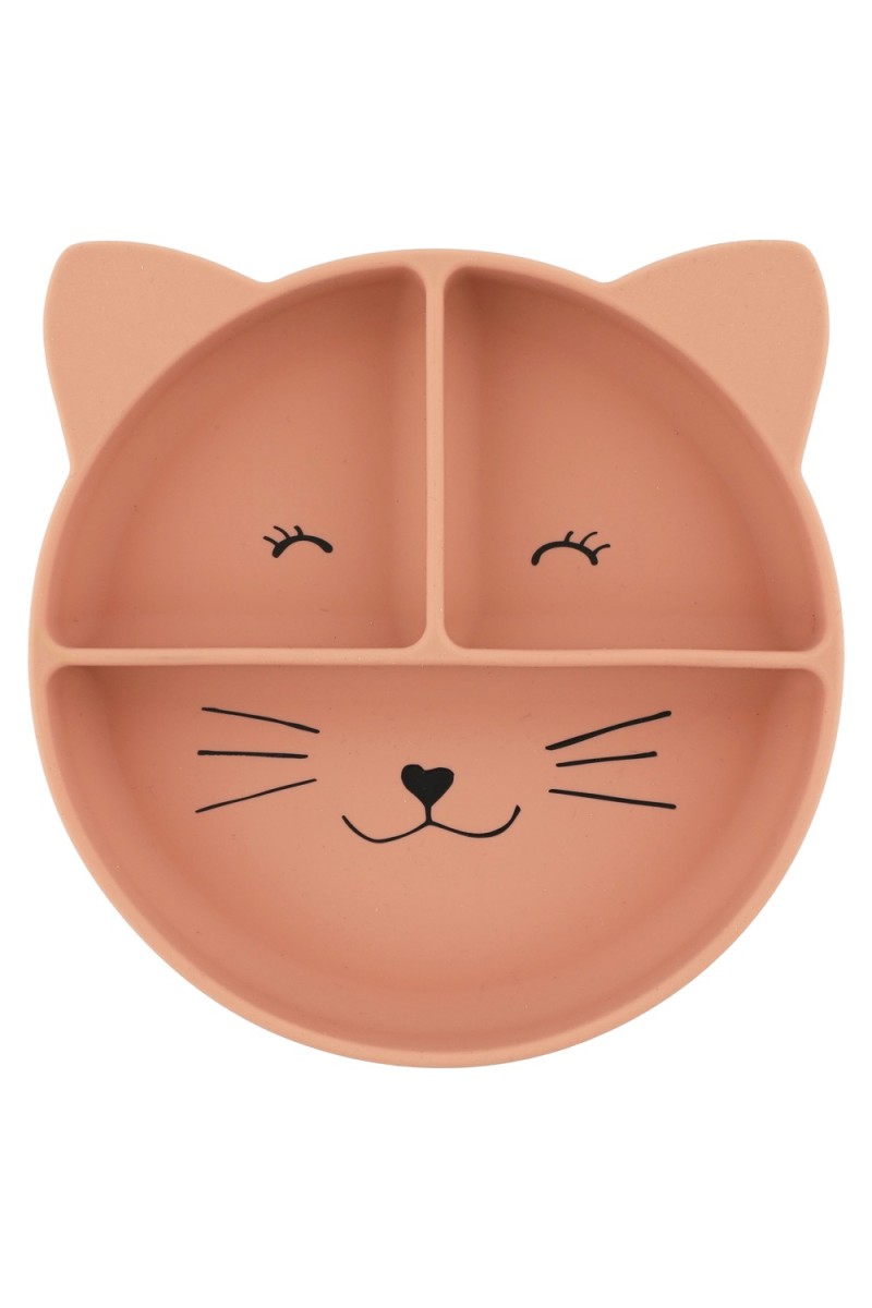 Тарілка дитяча силіконова трисекційна на присосці Trixie — безпечний і зручний вибір для навчання малюка самостійному харчуванню.