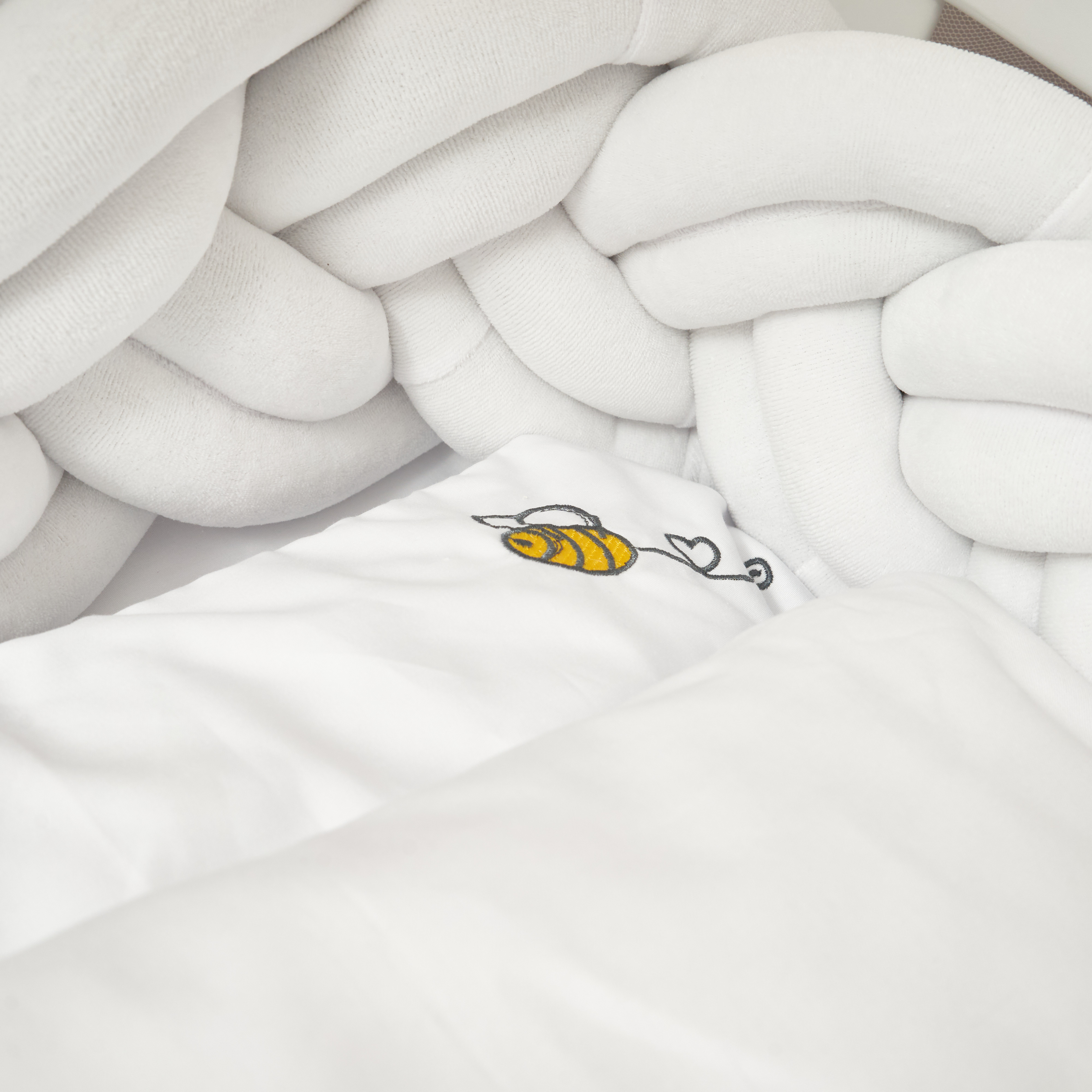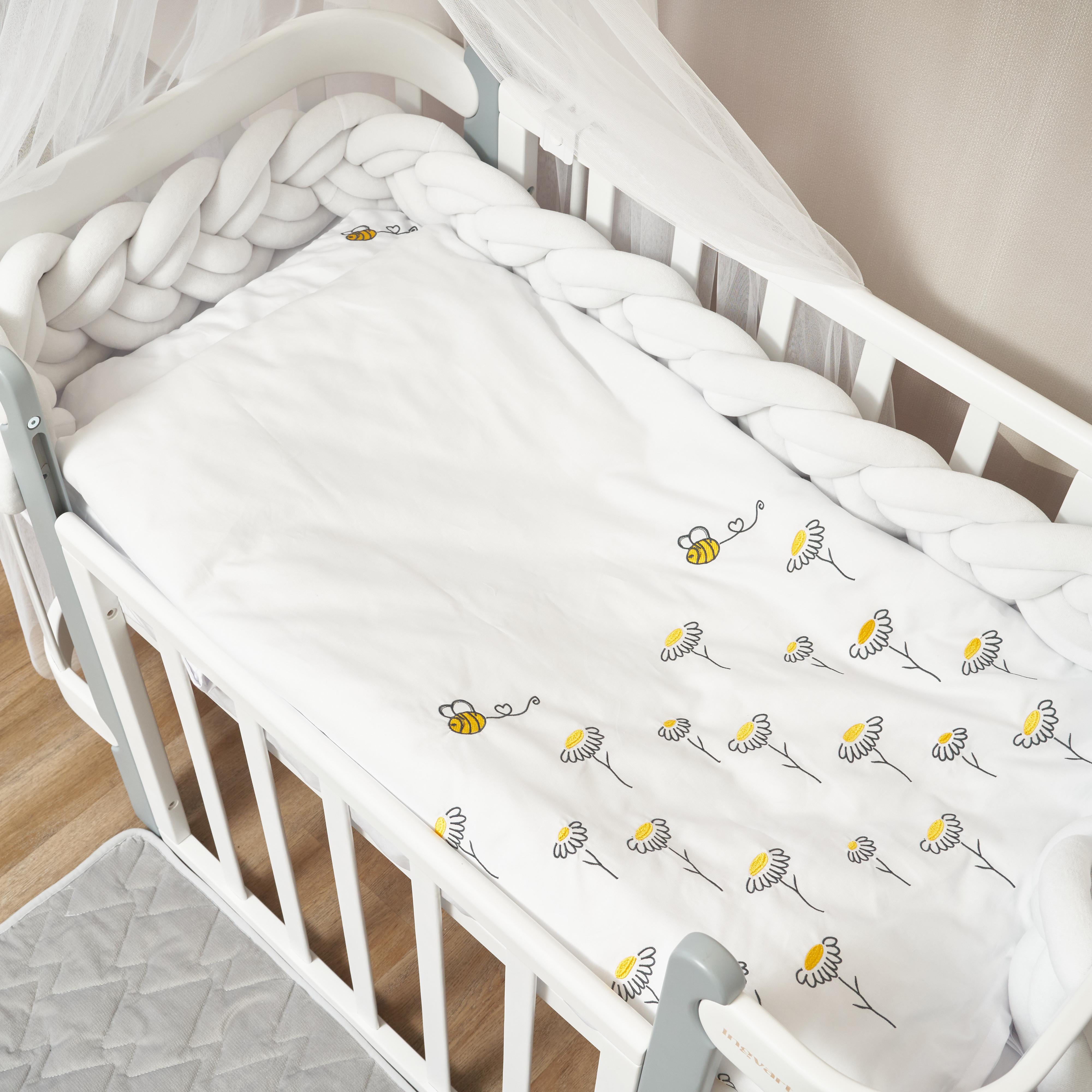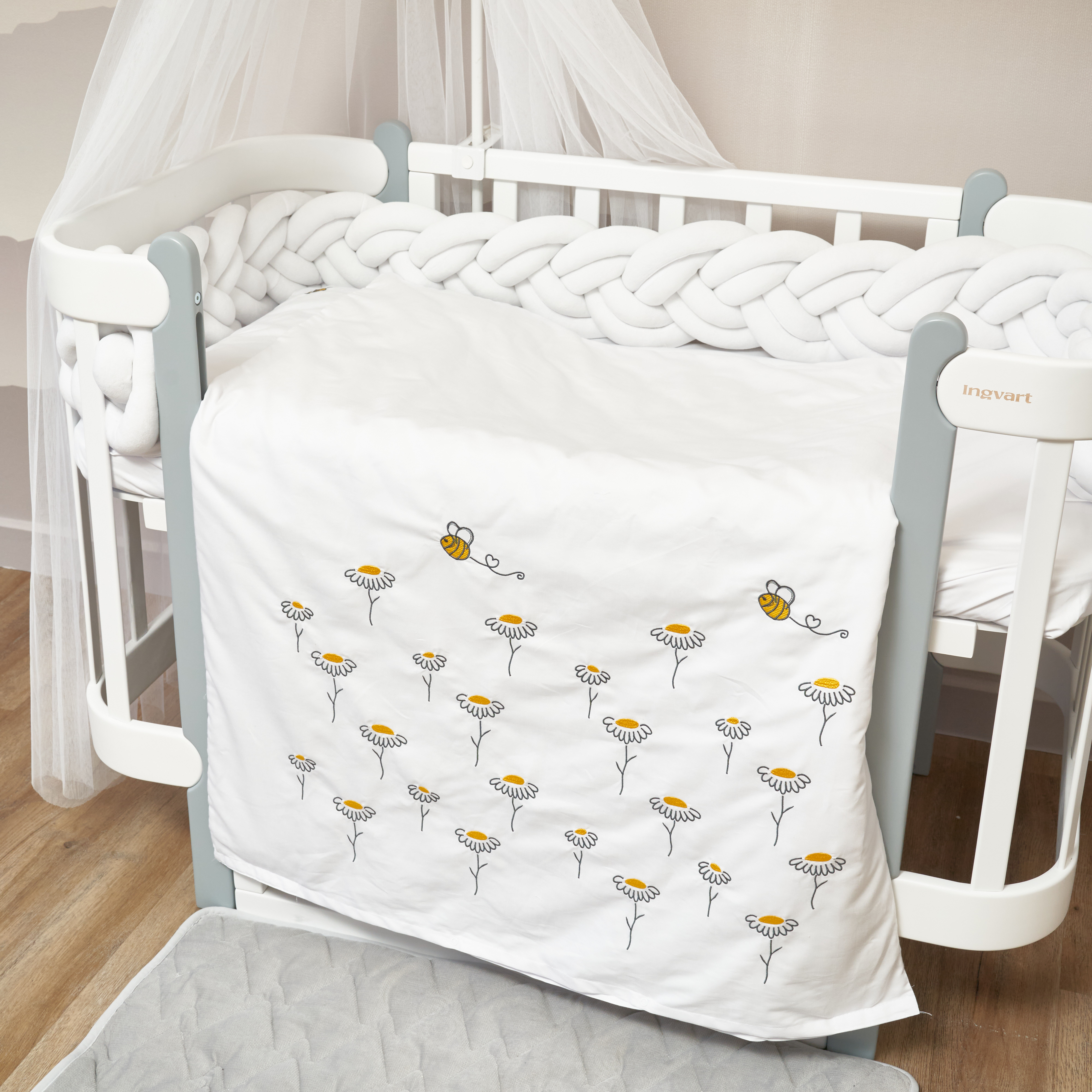 Змінна постіль 3 ел Twins Ромашка занурить у світ комфорту та розкіші. Виготовлена з високоякісного сатину, ця постільна білизна принесе вашому малюкові найбільш ніжний і затишний сон. Змінна постіль оздоблена вишивкою в вигляді ромашок та бджіл, кожен елемент цього комплекту - це вираз вашої турботи та любові до дитини. Розміри підковдри, наволочки та простирадла ідеально підходять для дитячого ліжечка, забезпечуючи максимальний комфорт. Оберіть нашу сатинову постільну білизну для дитячого ліжечка, щоб створити найкращі умови для сну вашої дитини та зробити кожен момент ще більш незабутнім. Характеристики: Матеріал: сатин 100% бавовна; Розміри підковдра: 120х90 см; Розміри наволочки: 40х60 см; Розміри простирадла: 120х60 см (на резинці). Догляд: Слід прати в делікатному режимі при температурі не вище 30-40°C.